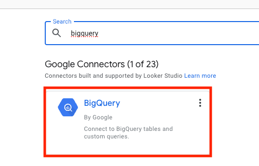 1. Find and select the BigQuery Google Connector